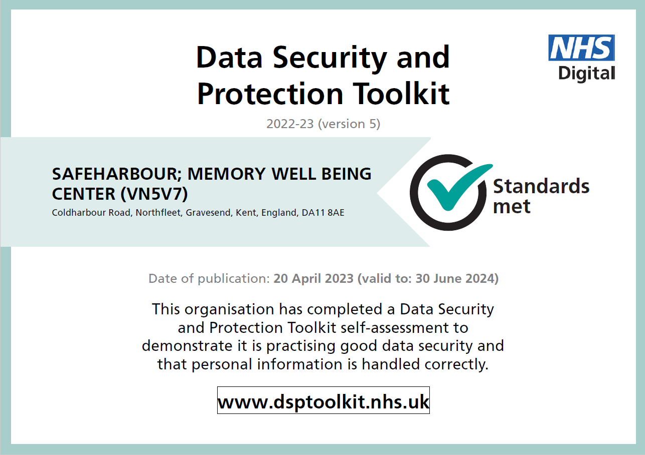 Please see below our Data Security and Protection Toolkit standards met certificate: