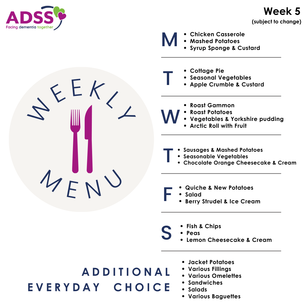 Please see this week’s lunch menu for The Beacon (Day Centre) below: