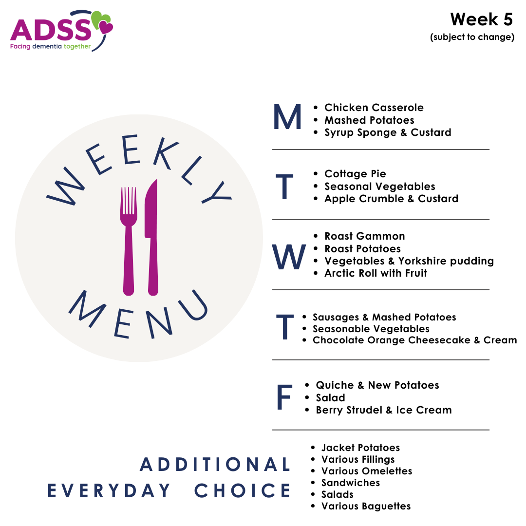 Please see this week’s lunch menu for The Beacon (Day Centre) below: