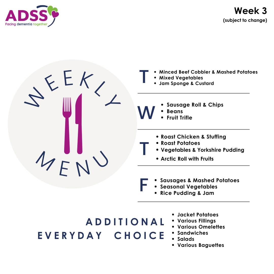 Please see this week’s lunch menu for The Beacon (Day Centre) below: