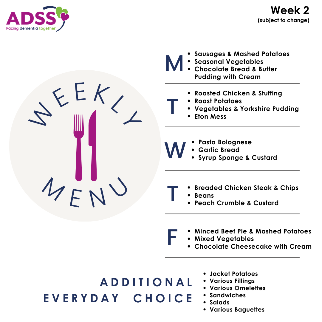 Please see this week’s lunch menu for The Beacon (Day Centre) below: