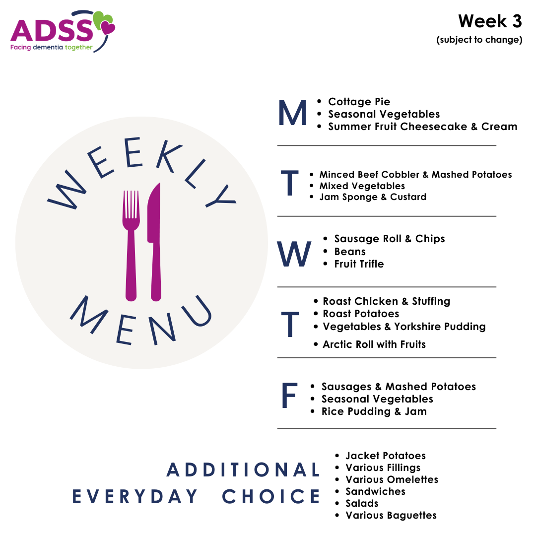 Please see this week’s lunch menu for The Beacon (Day Centre) below: