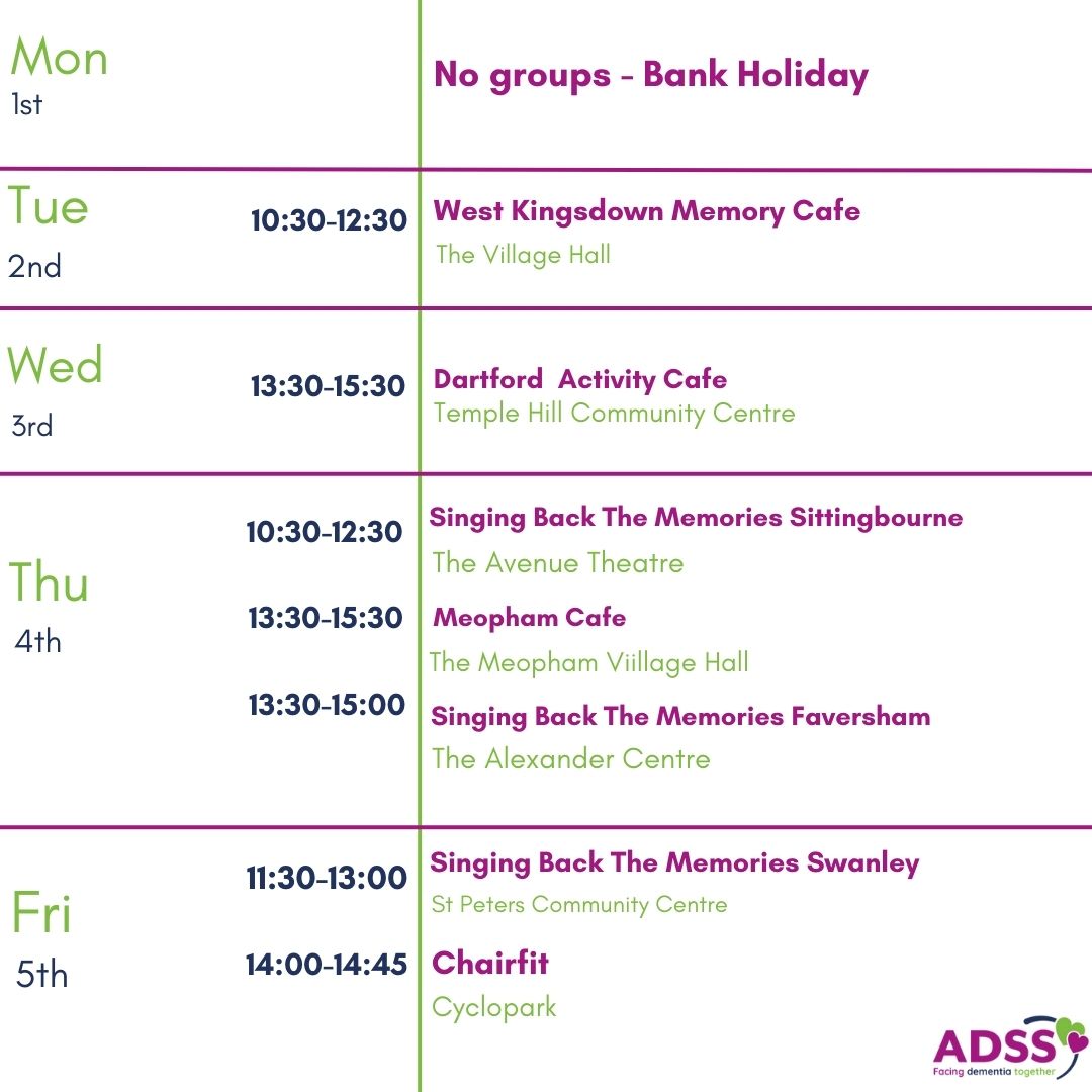To book your place at one of our wellbeing groups, please call us on 01474 533990 or email us at info@alz-dem.org.