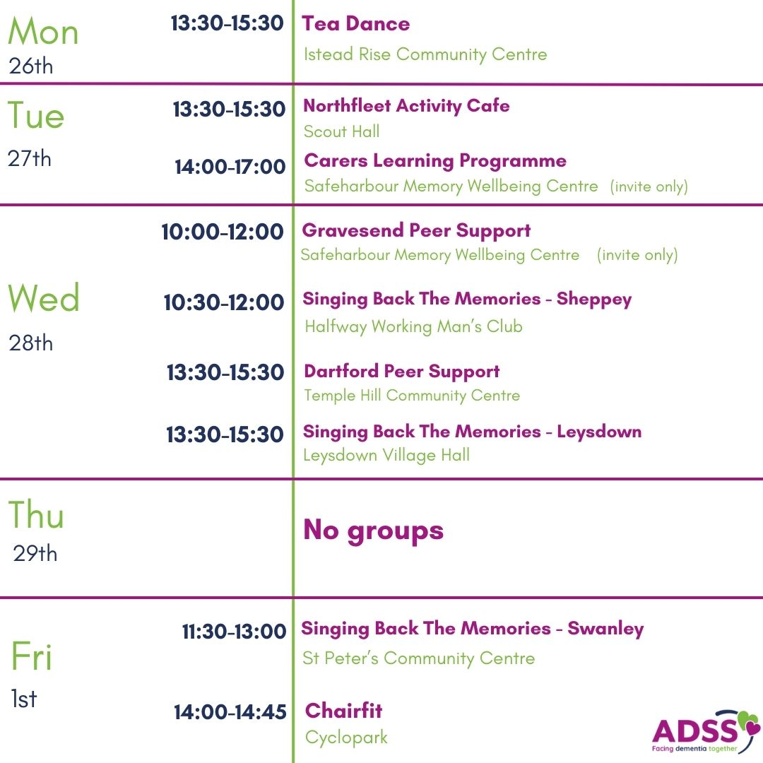To book your place at one of our wellbeing groups, please call us on 01474 533990 or email us at info@alz-dem.org.