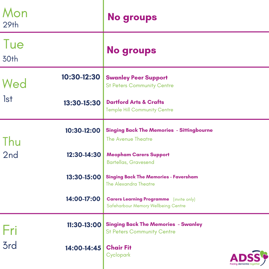 To find out more information about our wellbeing groups, please call us on 01474 533990 or email us at info@alz-dem.org.
