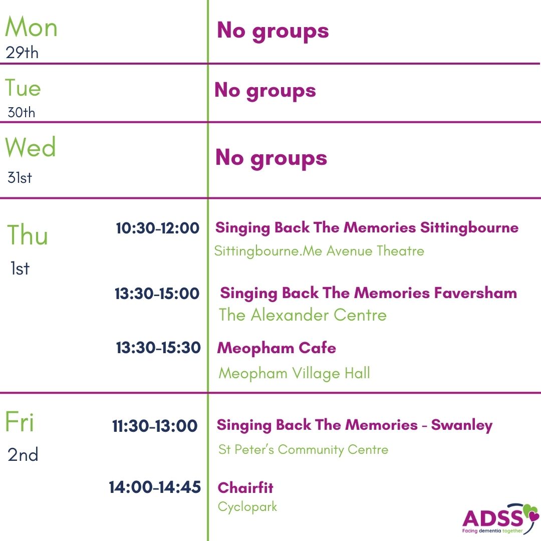 To book your place at one of our wellbeing groups, please call us on 01474 533990 or email us at info@alz-dem.org.
