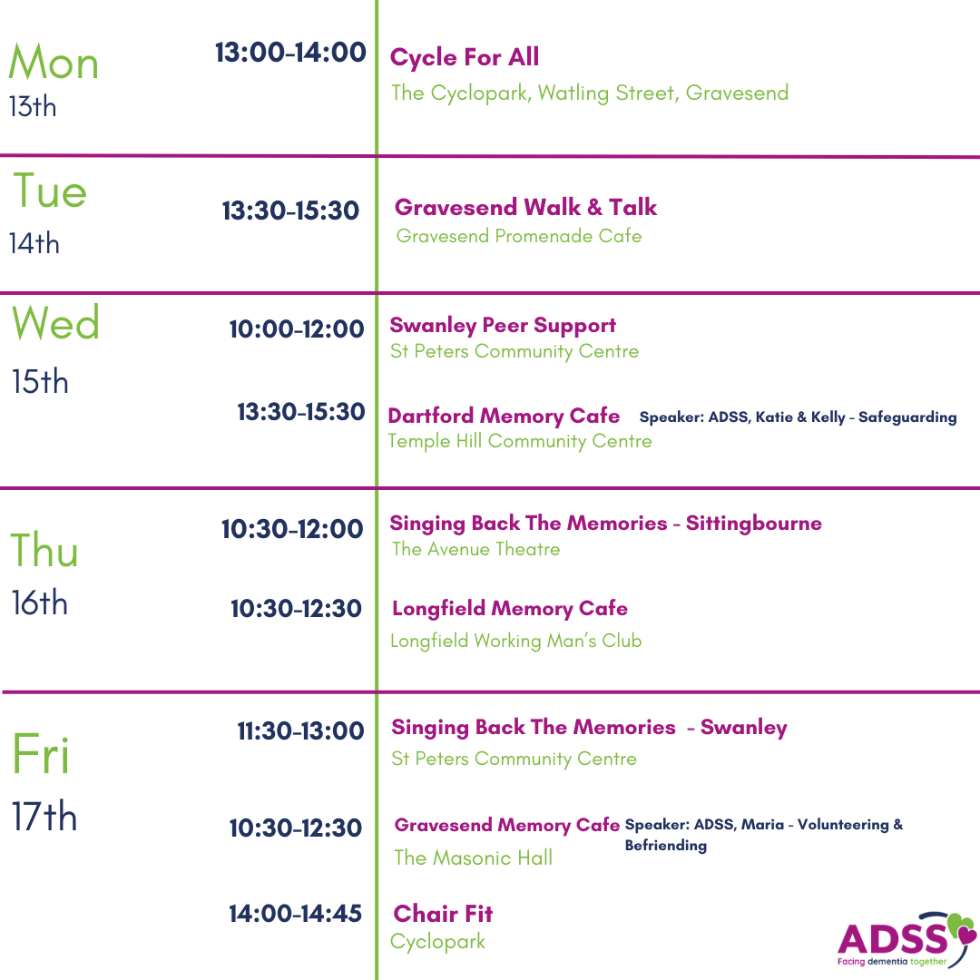 To find out more information about our wellbeing groups, please call us on 01474 533990 or email us at info@alz-dem.org.