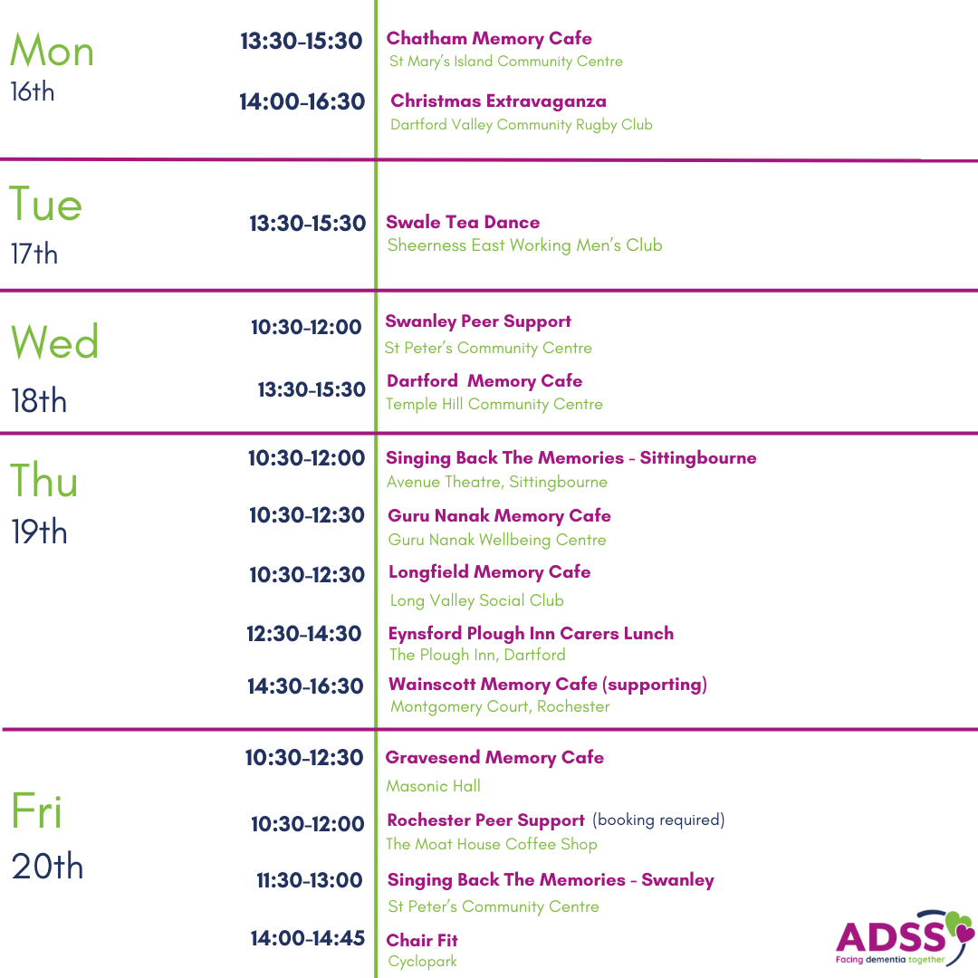 To find out more information about our wellbeing groups, please call us on 01474 533990 or email us at info@alz-dem.org.
