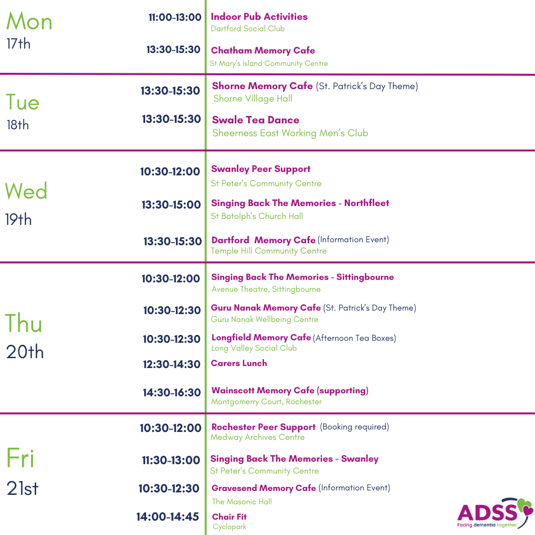 To find out more information about our wellbeing groups, please call us on 01474 533990 or email us at info@alz-dem.org.