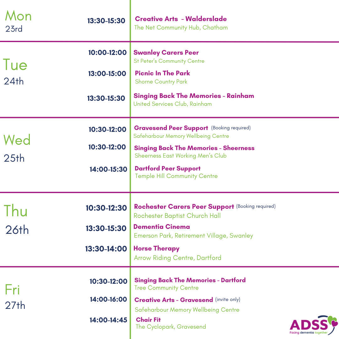 To find out more information about our wellbeing groups, please call us on 01474 533990 or email us at info@alz-dem.org.